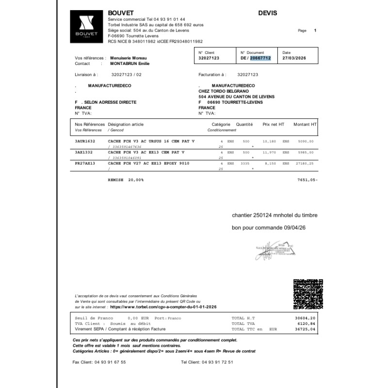 Suivant devis validé le 09/04